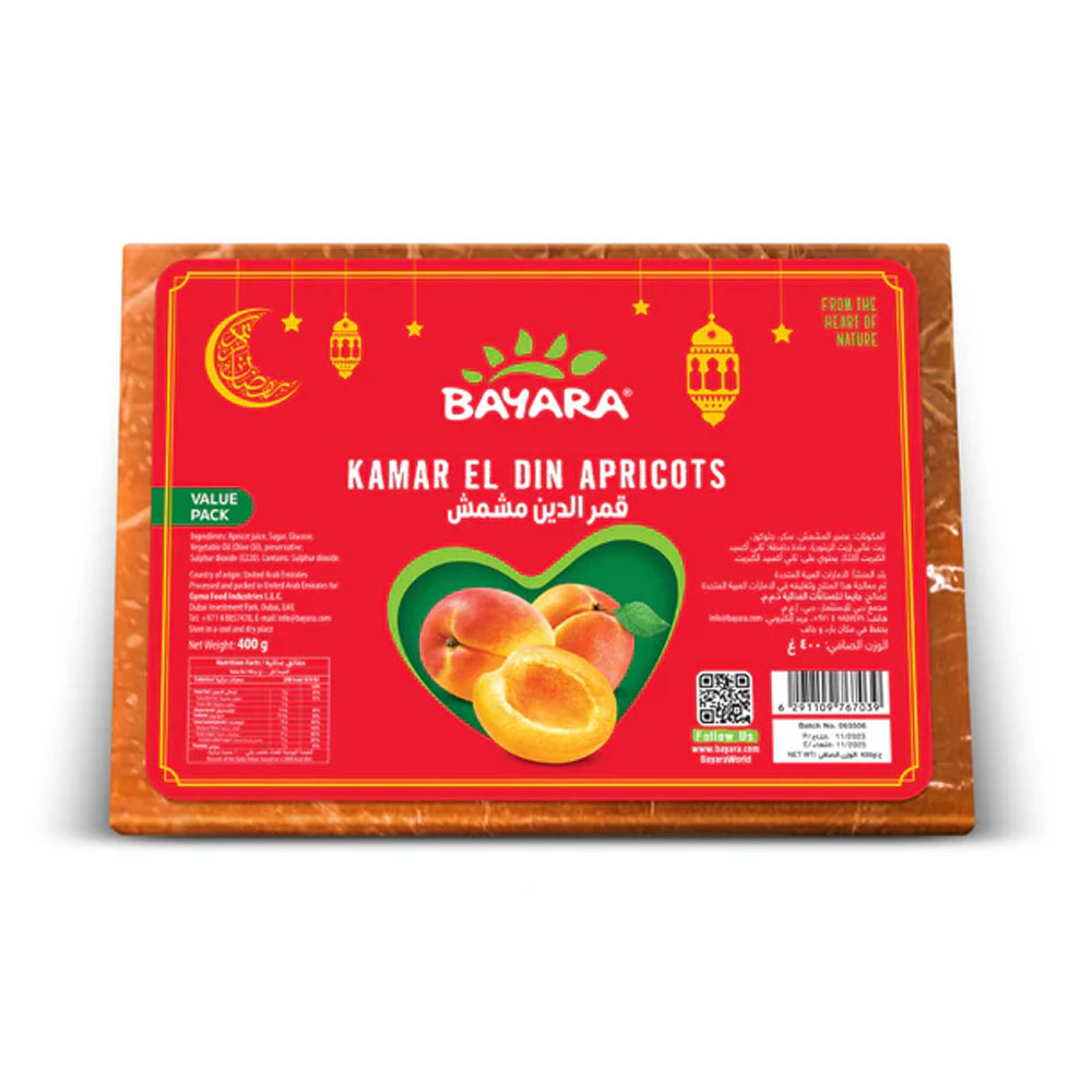 A “Crafted Excellence” Festive Staple. We believe that traditional recipes deserve the best ingredients. Our Kamar El Din is packed in a bright red and gold festive wrapper, making it a “Naturally Delicious” addition to your Ramadan pantry. By choosing Bayara, you enjoy a product that is easy to dissolve for refreshing drinks or to use as a base for gourmet desserts and jellies.
