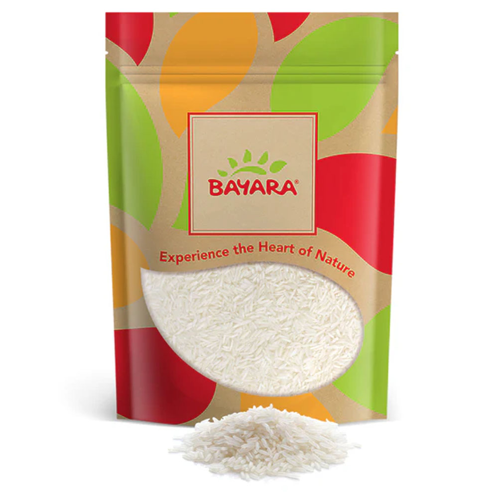 We designed this packaging with a vibrant, leafy pattern and a clear window so you can see the clean, white, long-grain quality of the rice inside. The resealable zip-lock top is built to protect the grains from moisture and pests, ensuring the aroma stays fresh for every meal. Trust Bayara to deliver the high-standard, natural grains that make healthy cooking a pleasure.