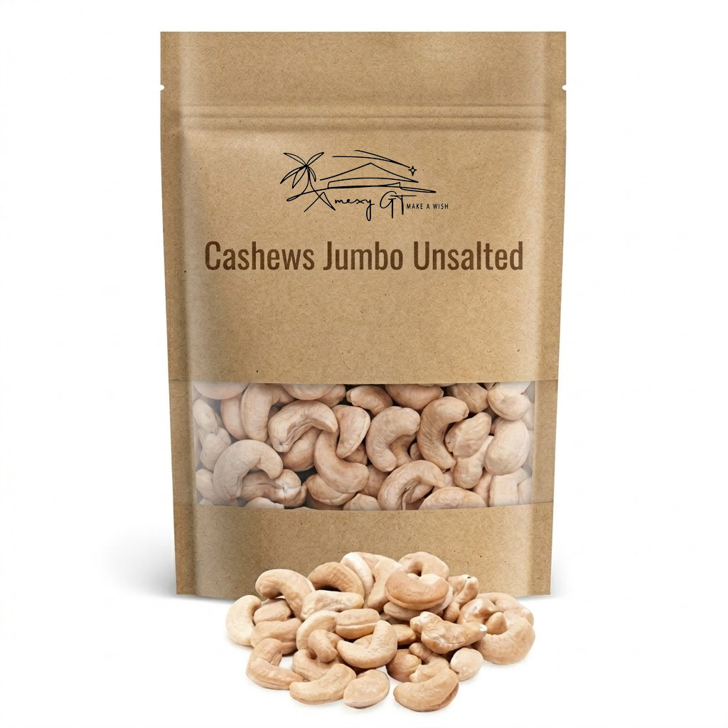 Enjoy the creamy, natural taste of Cashews Jumbo Unsalted. We provide extra-large, premium-grade cashews that allow you to “Experience the Heart of Nature” in every giant crunch. This 250g resealable bag is a perfect choice for those who want a “Naturally Delicious” snack without any added salt.
