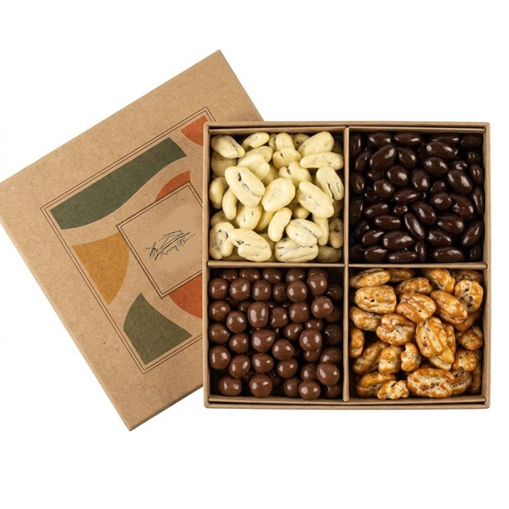 Four Gourmet Varieties: We offer a mix of white, milk, and dark chocolate coated nuts for a complete tasting experience.