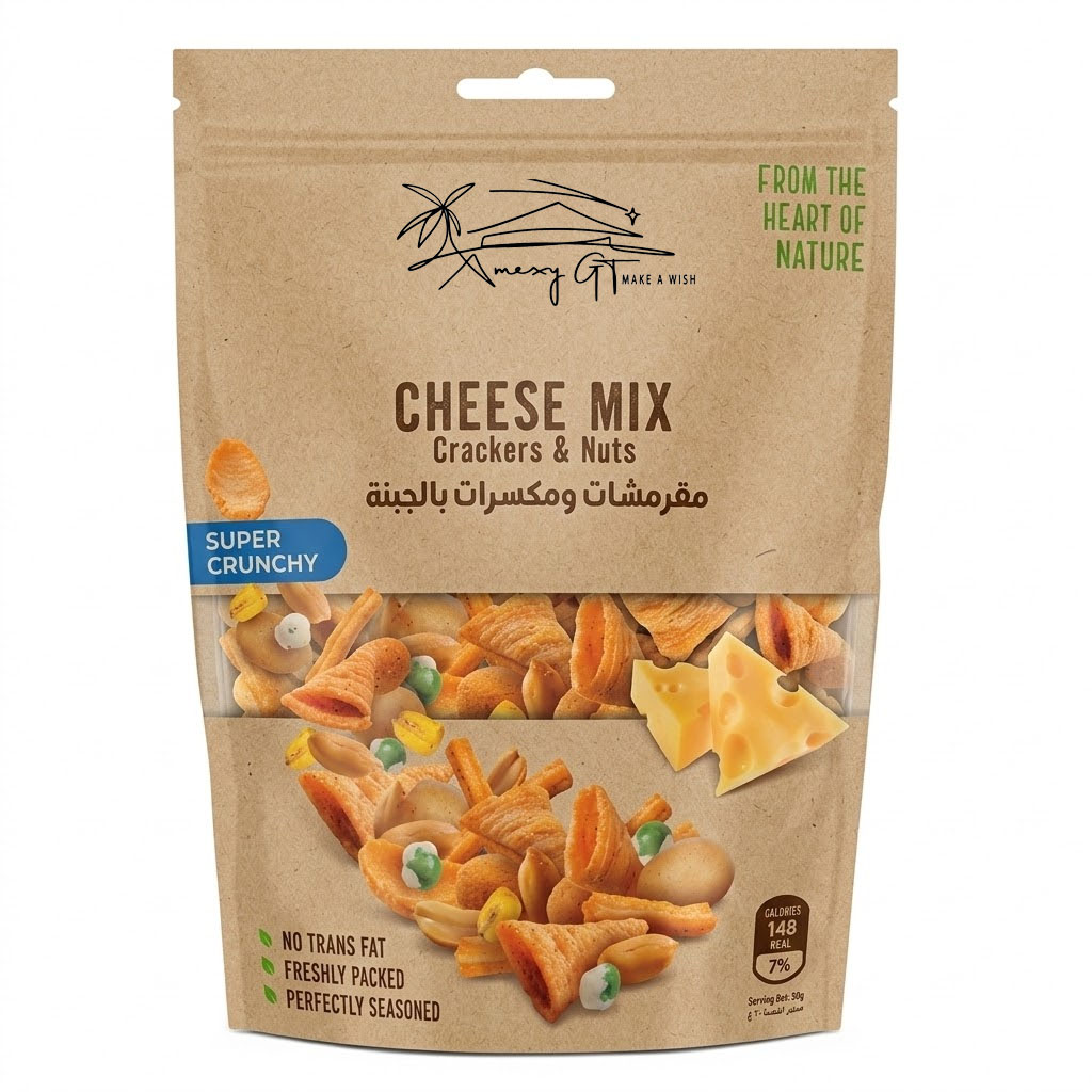 Experience a bold explosion of flavor with Crackers & Nuts Cheese Mix. We source high-quality ingredients from the “Heart of Nature” to bring you a satisfying snack that is perfect for any cheese lover.
