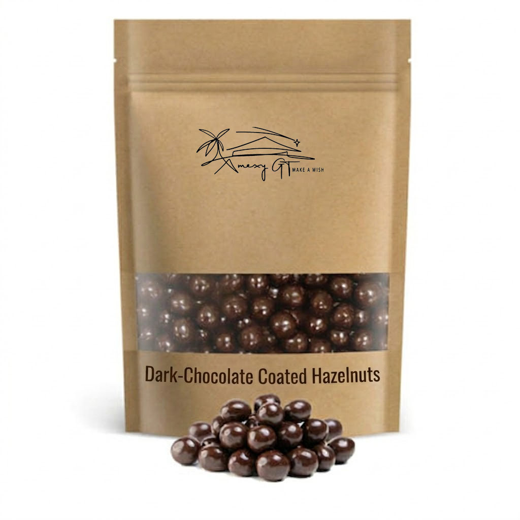Resealable 250g Pouch: Our sturdy zip-lock bag keeps your dark chocolate hazelnuts fresh and easy to store.