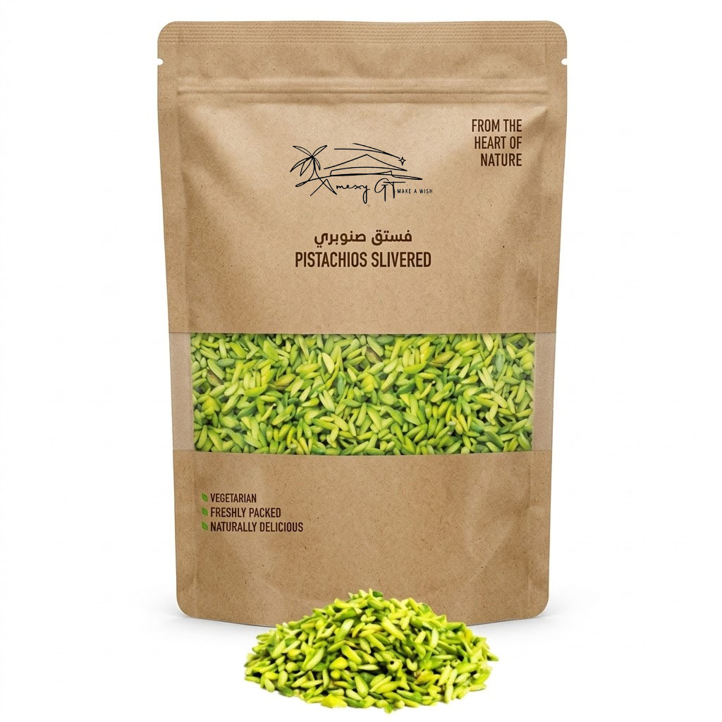 The perfect finishing touch for every chef. We believe that presentation is just as important as taste. Since our pistachios are Freshly Packed, they maintain their crisp texture and vibrant green color, making them the ideal topping for traditional Arabic sweets, creamy puddings, or even festive rice dishes. This Vegetarian-friendly ingredient is also a wonderful addition to your morning granola or artisanal baked goods. For a complete dessert spread, try pairing these slivers with our Safawi Dates or Roasted Hazelnuts.